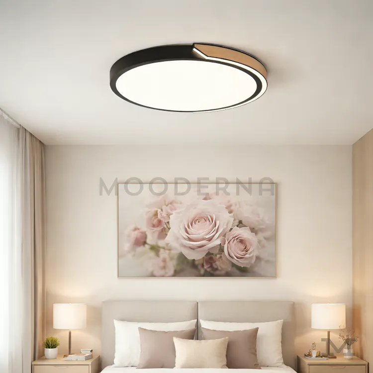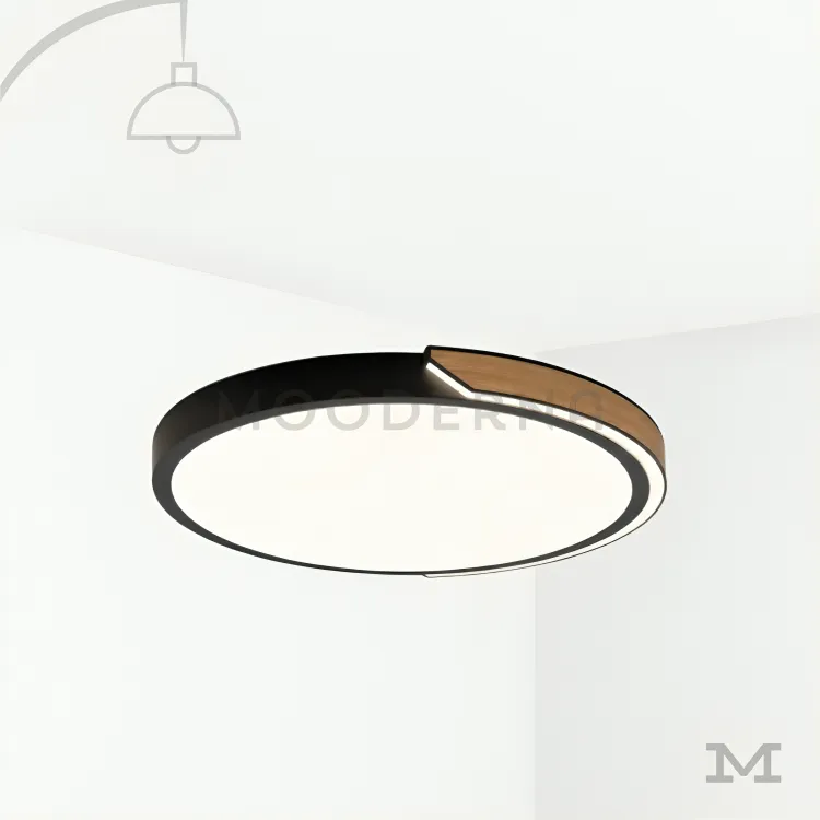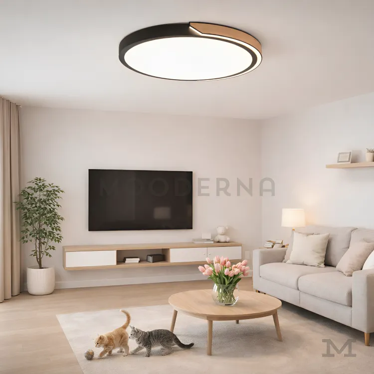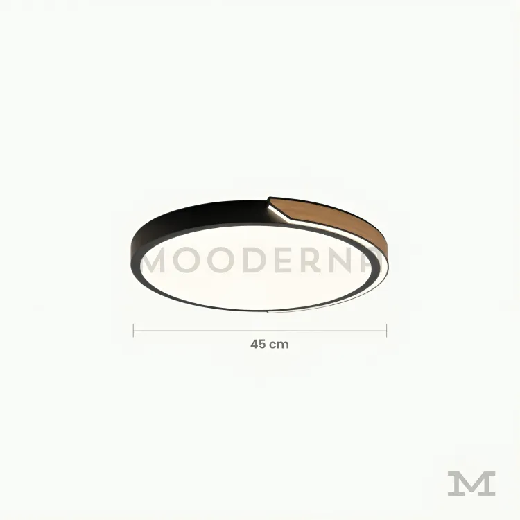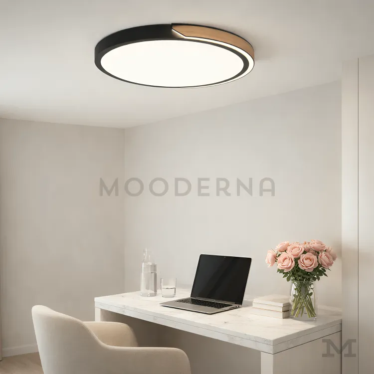 Olivia en fondo blanco, resaltando su diseño circular de perfil delgado con acabado dorado y luz LED integrada.