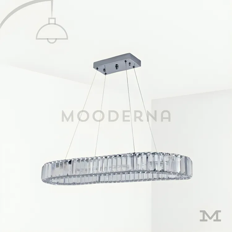 Luminaria Aries Platinium con diseño cromado en fondo blanco.