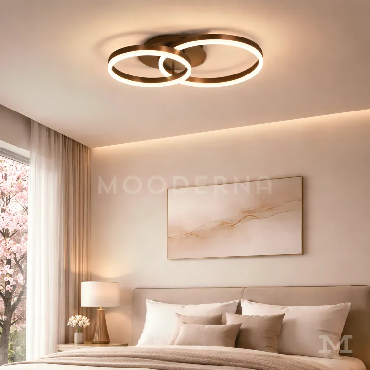 Katianna Gold en fondo blanco, destacando su diseño moderno con doble aro LED en acabado dorado elegante.