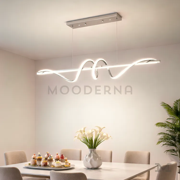 Rose Black en fondo blanco, destacando su diseño moderno ondulado en color negro con iluminación LED integrada.
